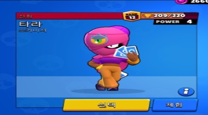 신화급 브롤러 중 하나로 타로카드를 쥐고 있어서 아마 이름이 타라이지 않을까 싶네요