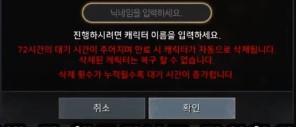 캐릭터 삭제 대기시간이