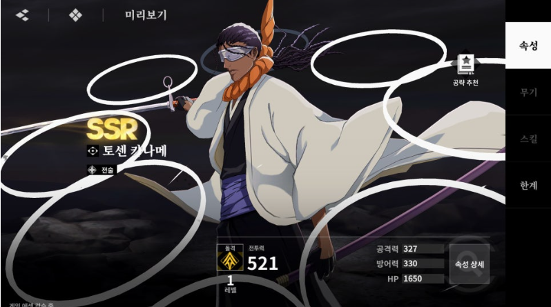 | 우라하라 키스케 | 중거리 참술 계열 서포터. 적을 한 곳에 모으는 군중 제어 능력과 아군 공격력/치명타 피해 버프 제공. 리세마라 우선 목표. | |