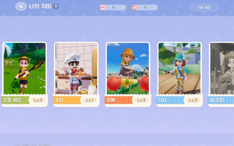초반에는 모든 취미를 3렙까지 올려도 좋습니다