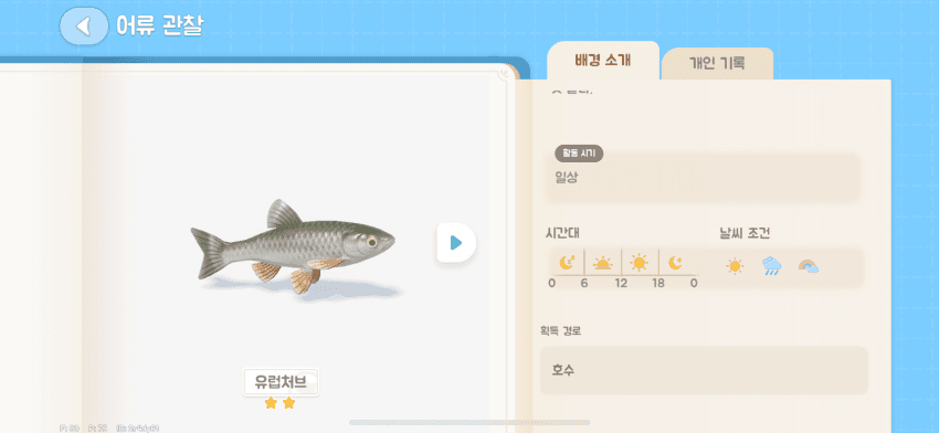 각 지역마다 레벨 · 날씨 · 시간 조건이 다른 어종이 등장합니다.