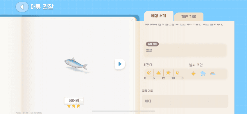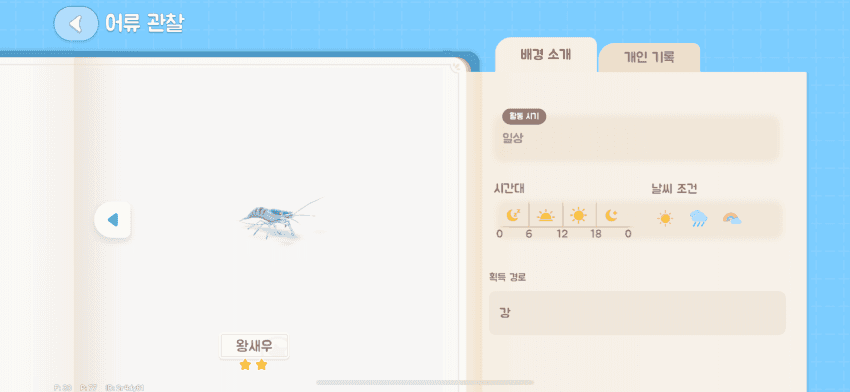 특정 희귀 어종은 무지개 날씨나 야간 시간대 조건이 많습니다.